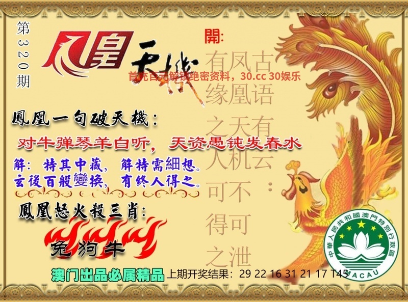 322期:澳门凤凰网【文官武将(真心宿管)